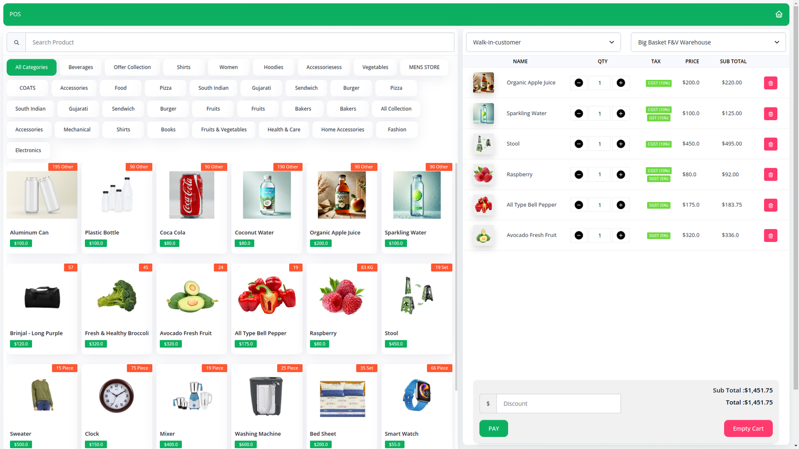 With the POS Module, tracking your revenue in real time has never been easier. At the top of the dashboard, you will find a dedicated section displaying the total sales amount. This feature allows you to monitor your revenue at a glance, empowering you to make informed decisions about your business is financial health. Whether you are analyzing daily, weekly, or monthly sales trends, our platform provides the tools you need to stay on top of your finances effortlessly.